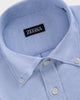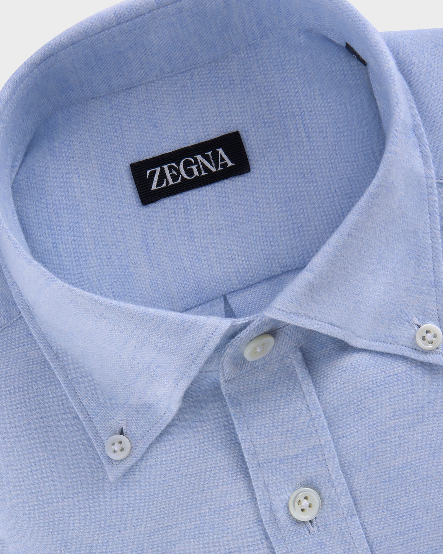 A study in understated refinement, this pale blue shirt is crafted from softly brushed cotton twill flannel, chosen for its supple hand and relaxed drape. The washed finish lends depth to the hue and an effortless, lived-in character, while preserving a crisp, tailored silhouette.
