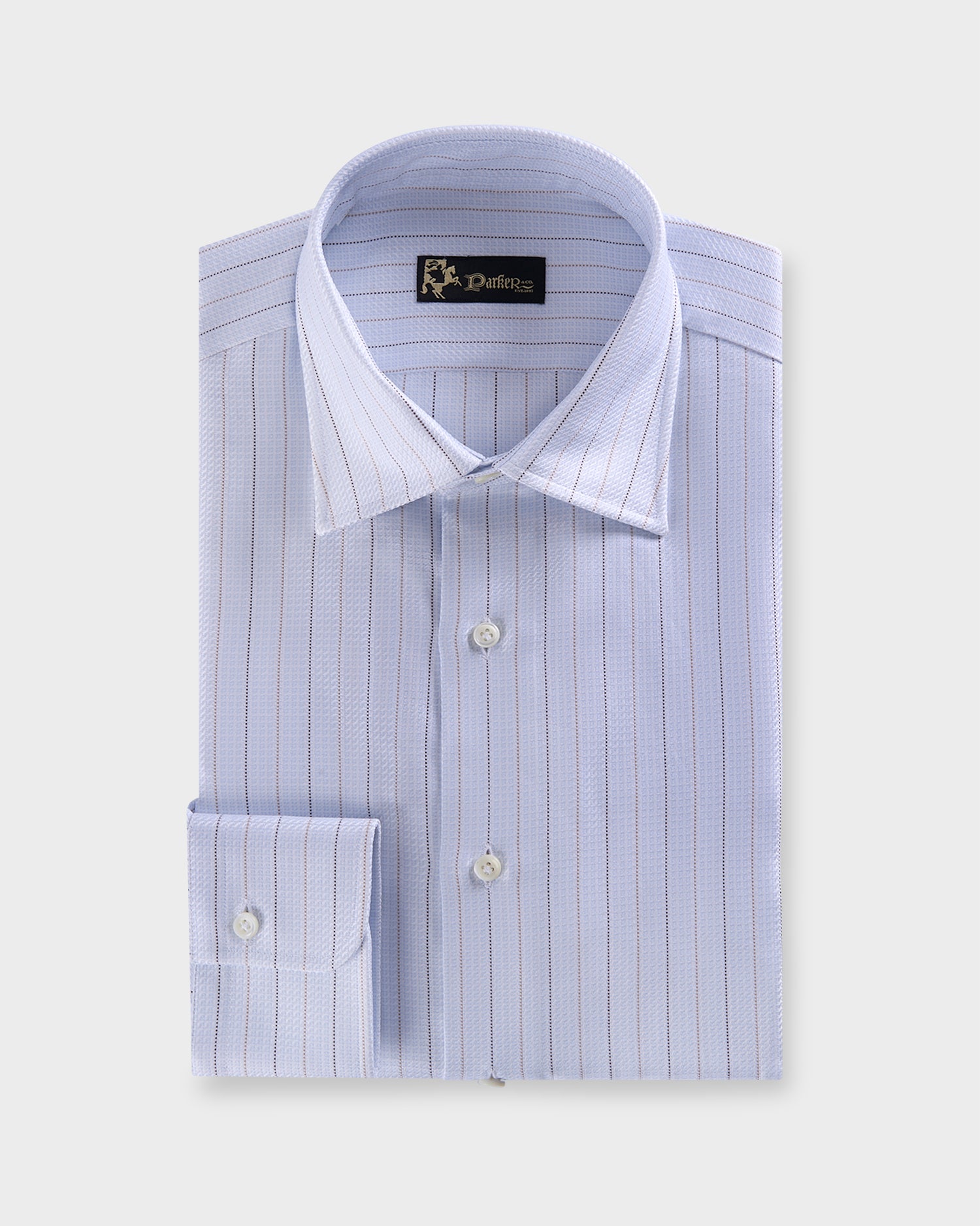 Pale Blue Honeycomb Texture Brown Pinstripe Shirt