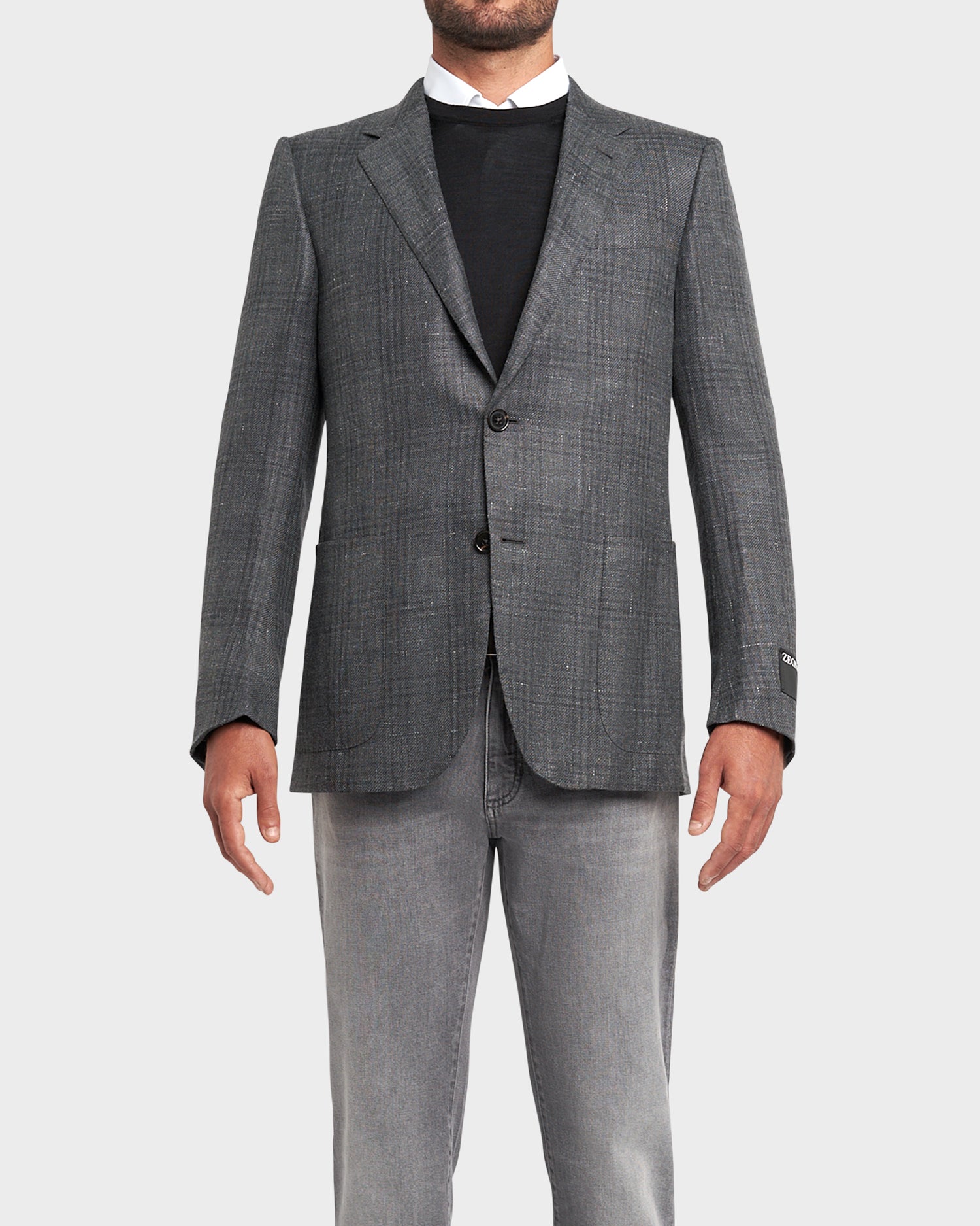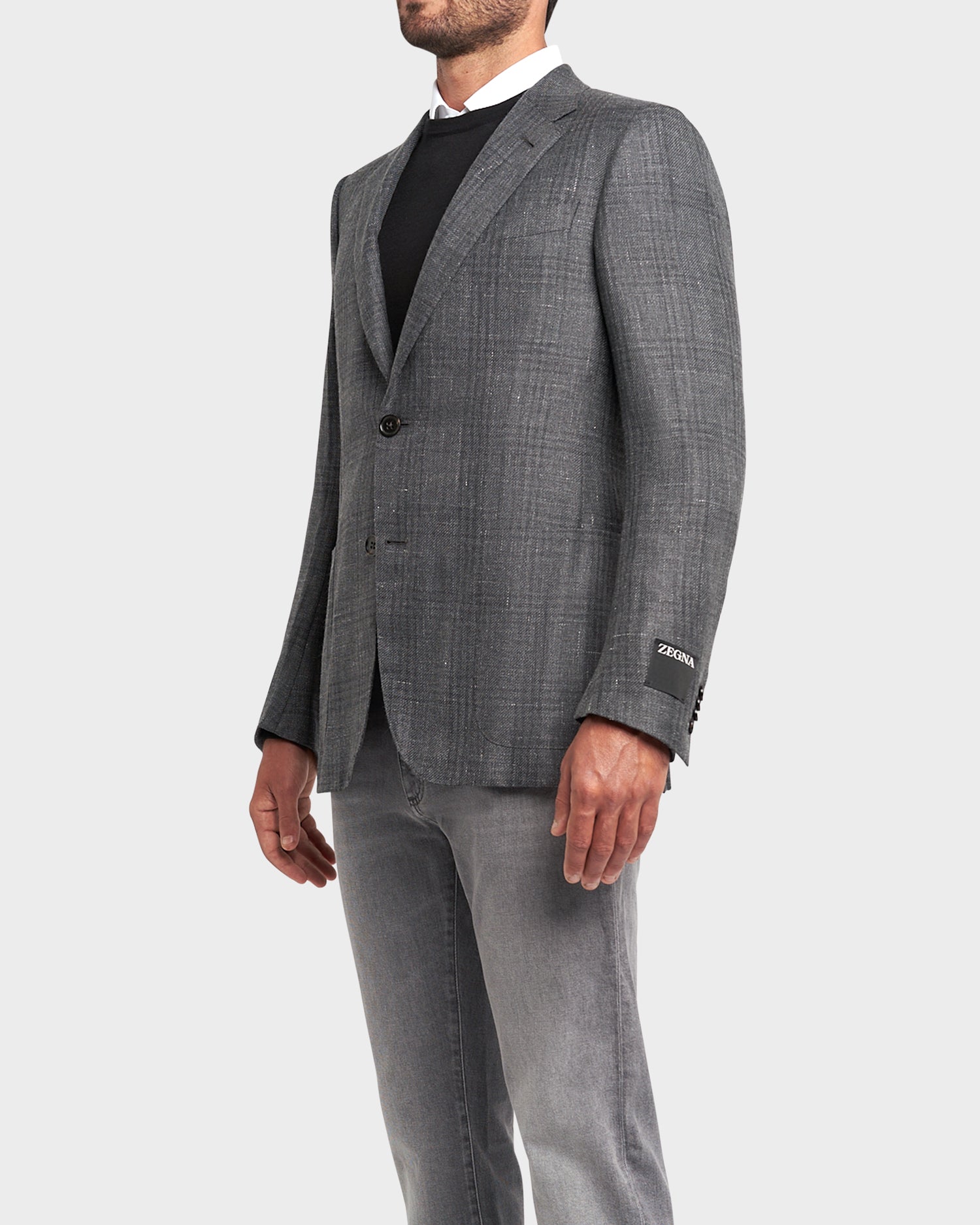 Tonal Check Cashmere Silk Hemp Sports Jacket