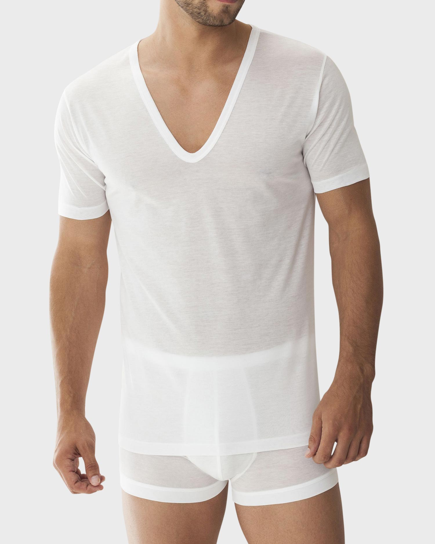 This classic short-sleeved shirt is made using high-quality twined cotton. The cotton used is mercerised to enhance its quality. This gives it a new fibre structure and restores the sheen it lost during the natural drying process after harvesting. The mercerised cotton is particularly strong and keeps its shape well. The cotton is then woven to produce an exquisite single jersey fabric. The high-quality single jersey shimmers like silk and is slightly translucent.