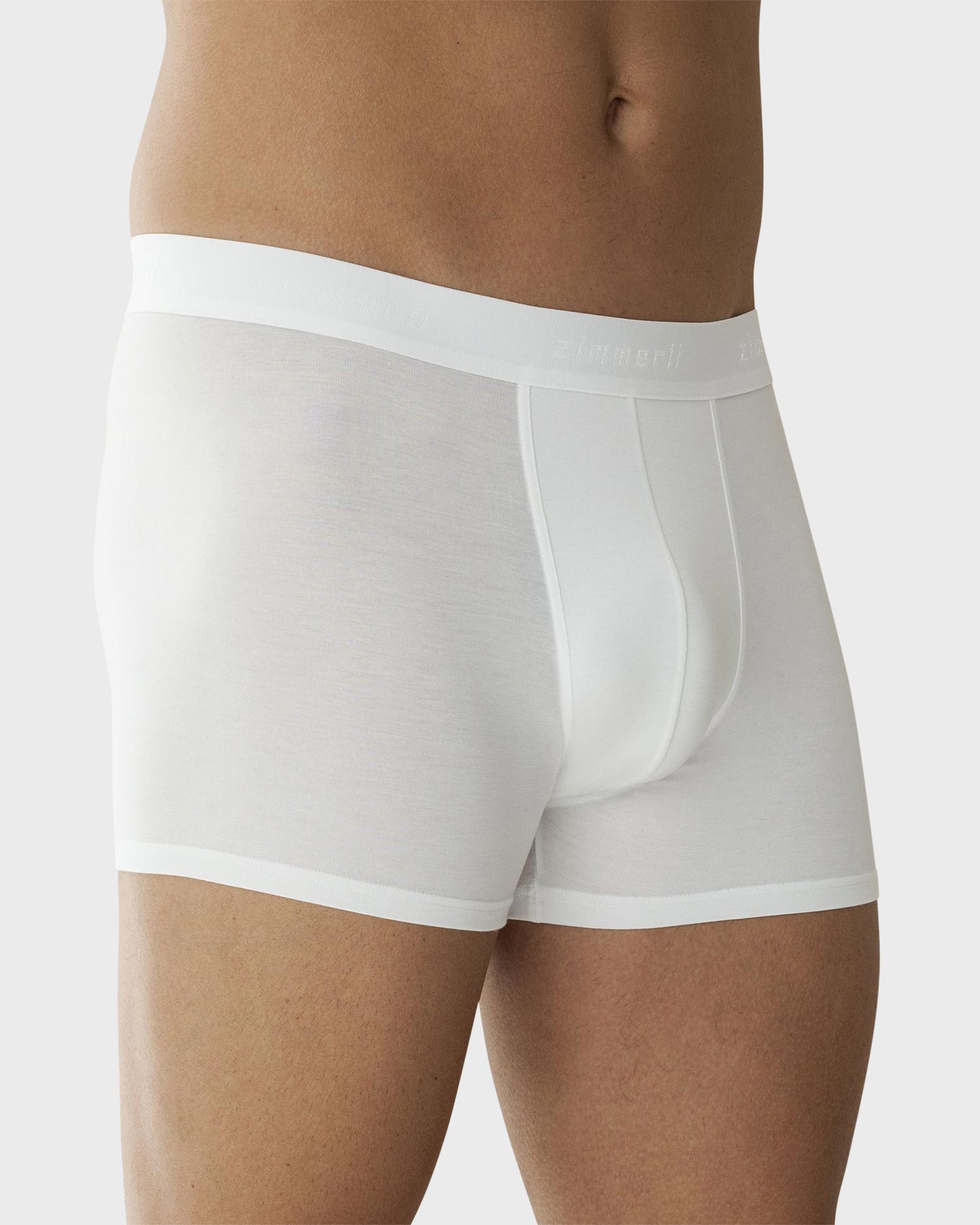 Exceptionally soft and temperature-regulating. These men's boxer briefs have an elastic, dark blue waistband with a woven Zimmerli logo on the front centre of the band. They have a figure-hugging and comfortably tight fit.