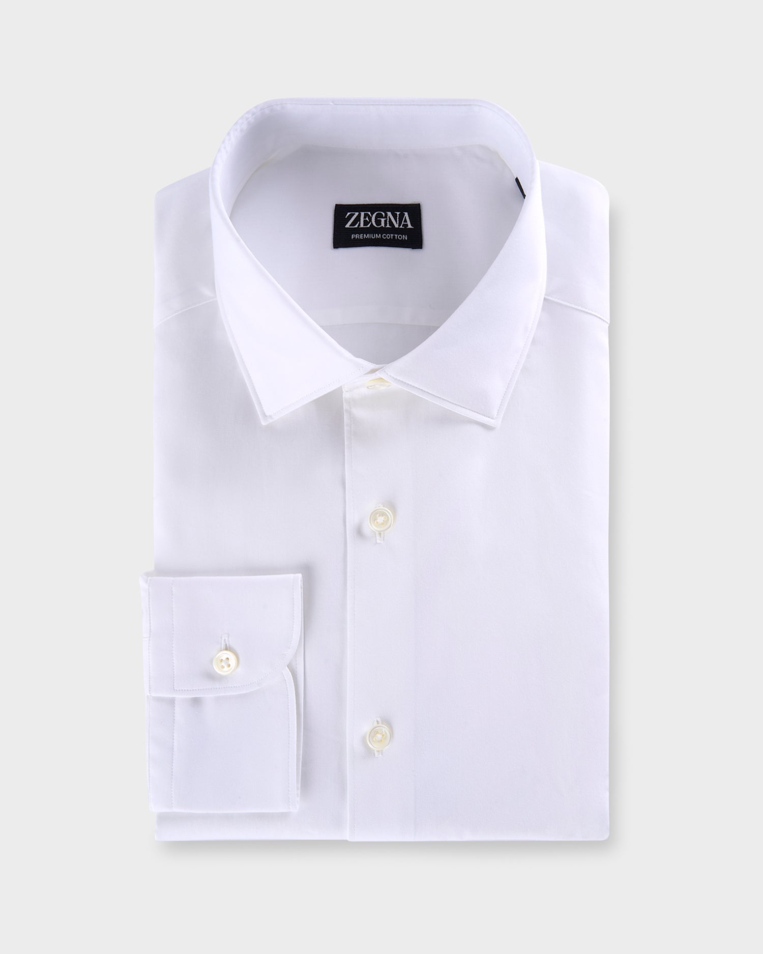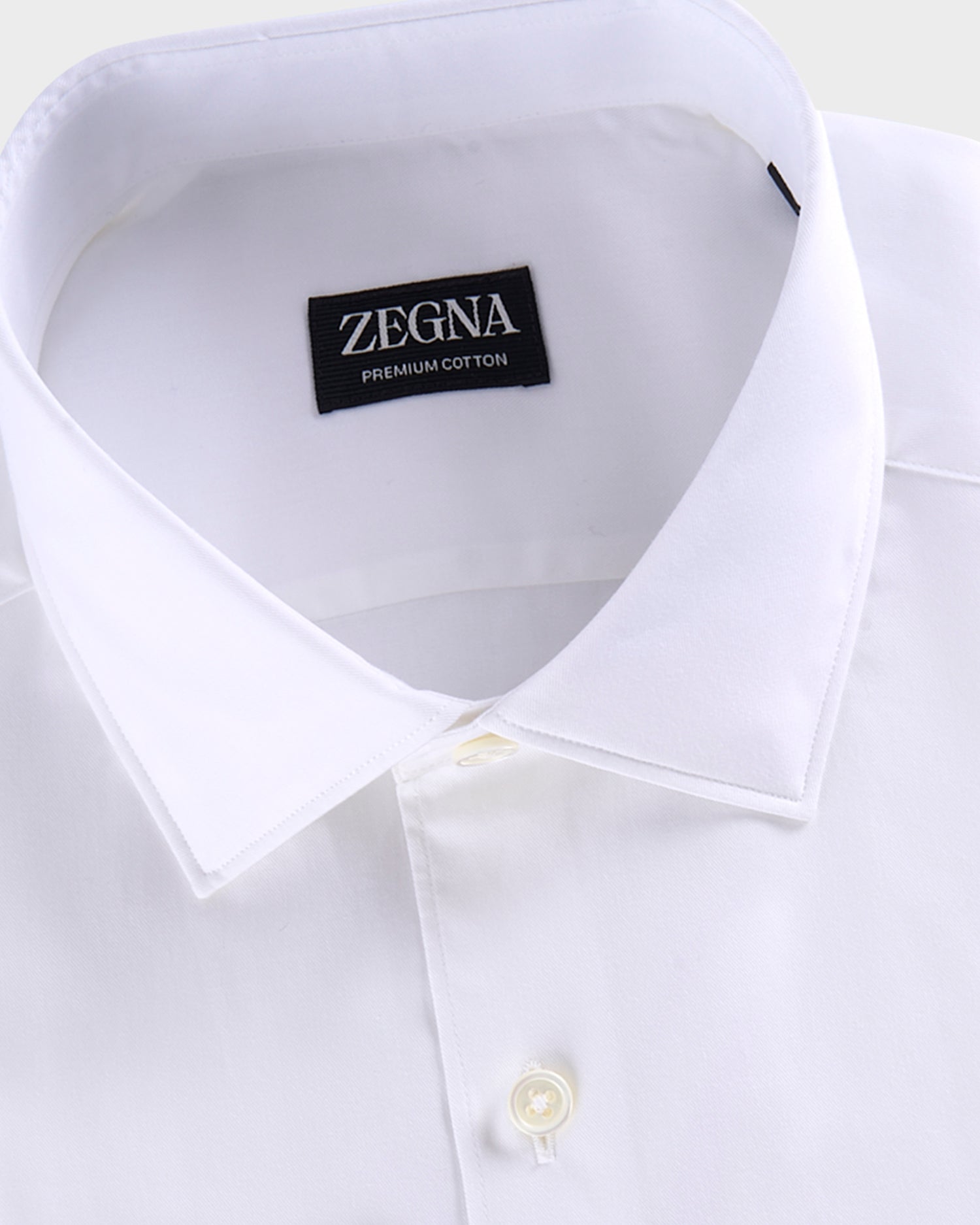 Zegna's expertise in fine textiles shines in this white premium cotton long-sleeve tailoring shirt. This resilient, naturally sophisticated material is the perfect match for a staple of elegant menswear.