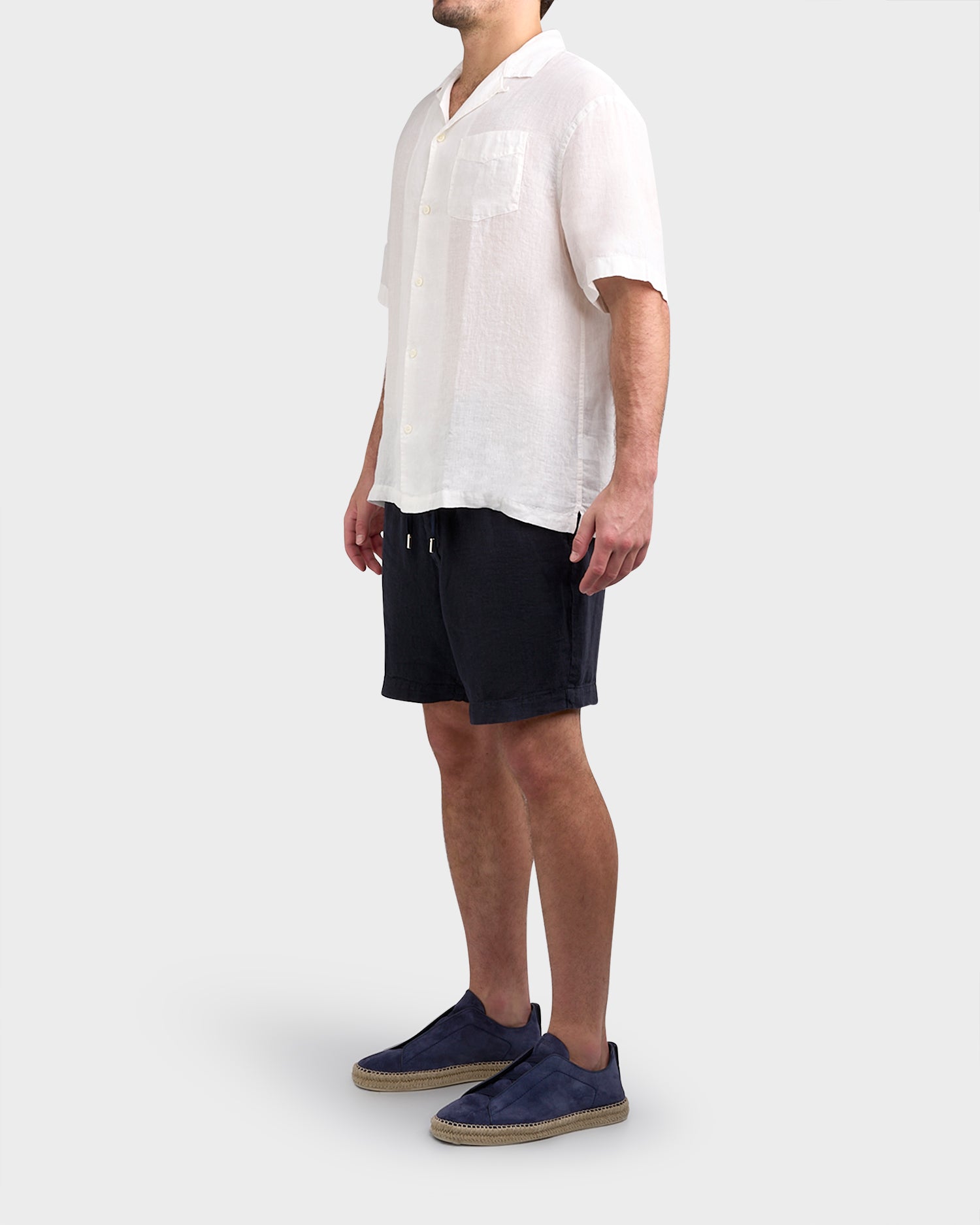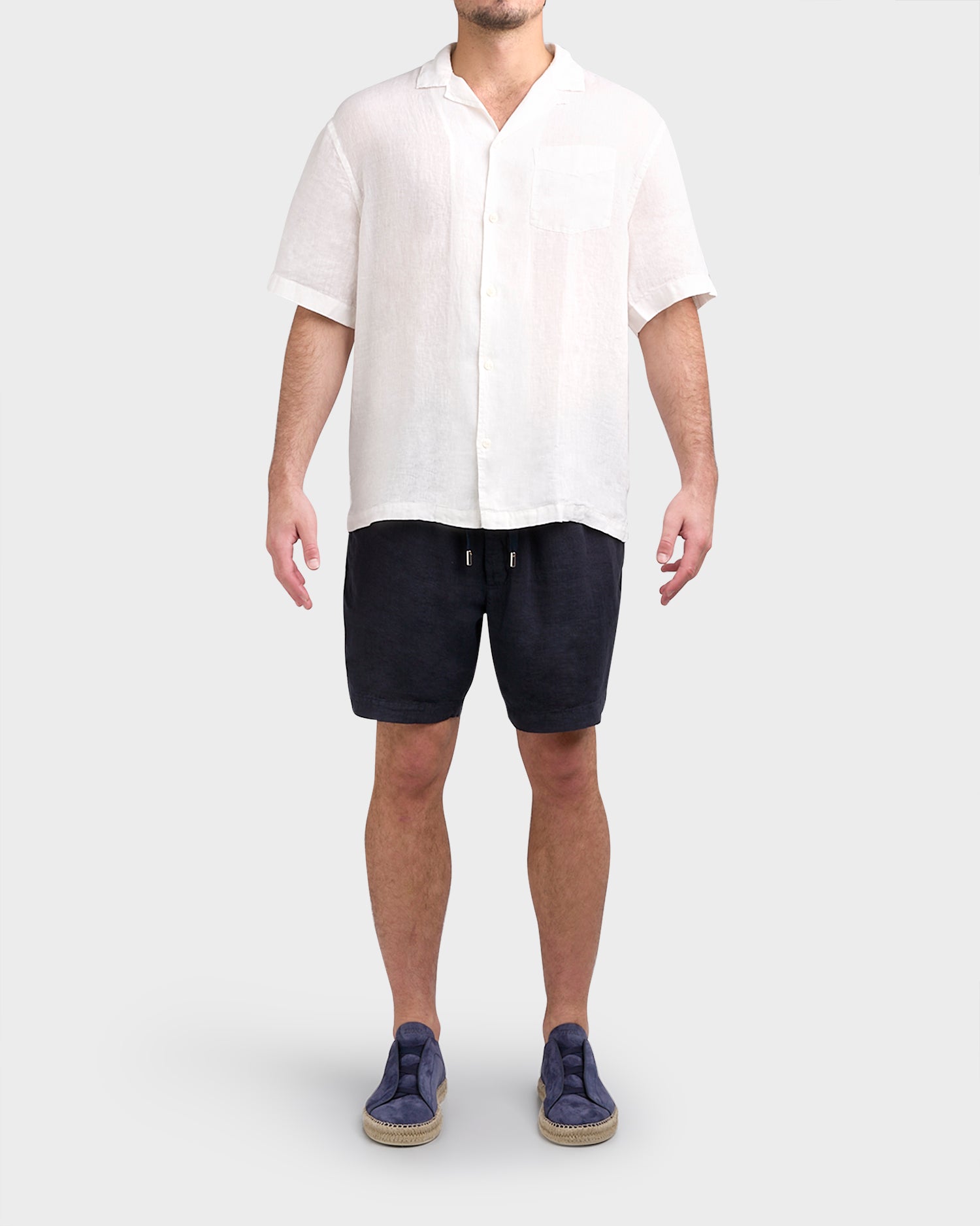White Pure Linen Patch Pocket Shirt