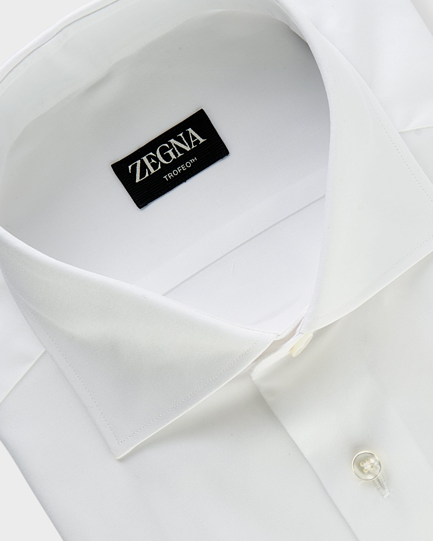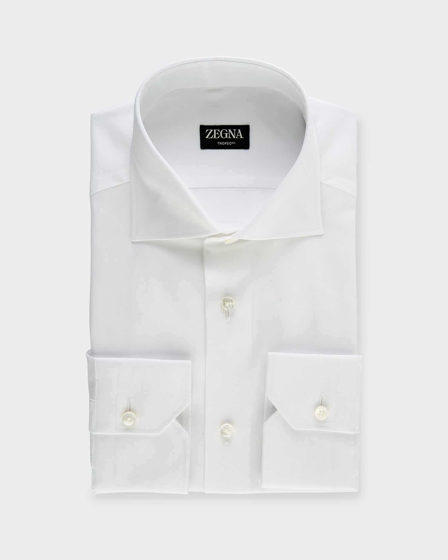 Crafted from pure Trofeo™ cotton, only the longest, more elastic fibers are hand-picked to grant this white shirt its premium quality and performance. The classic button-up is styled with a cutaway collar and standard cuffs.