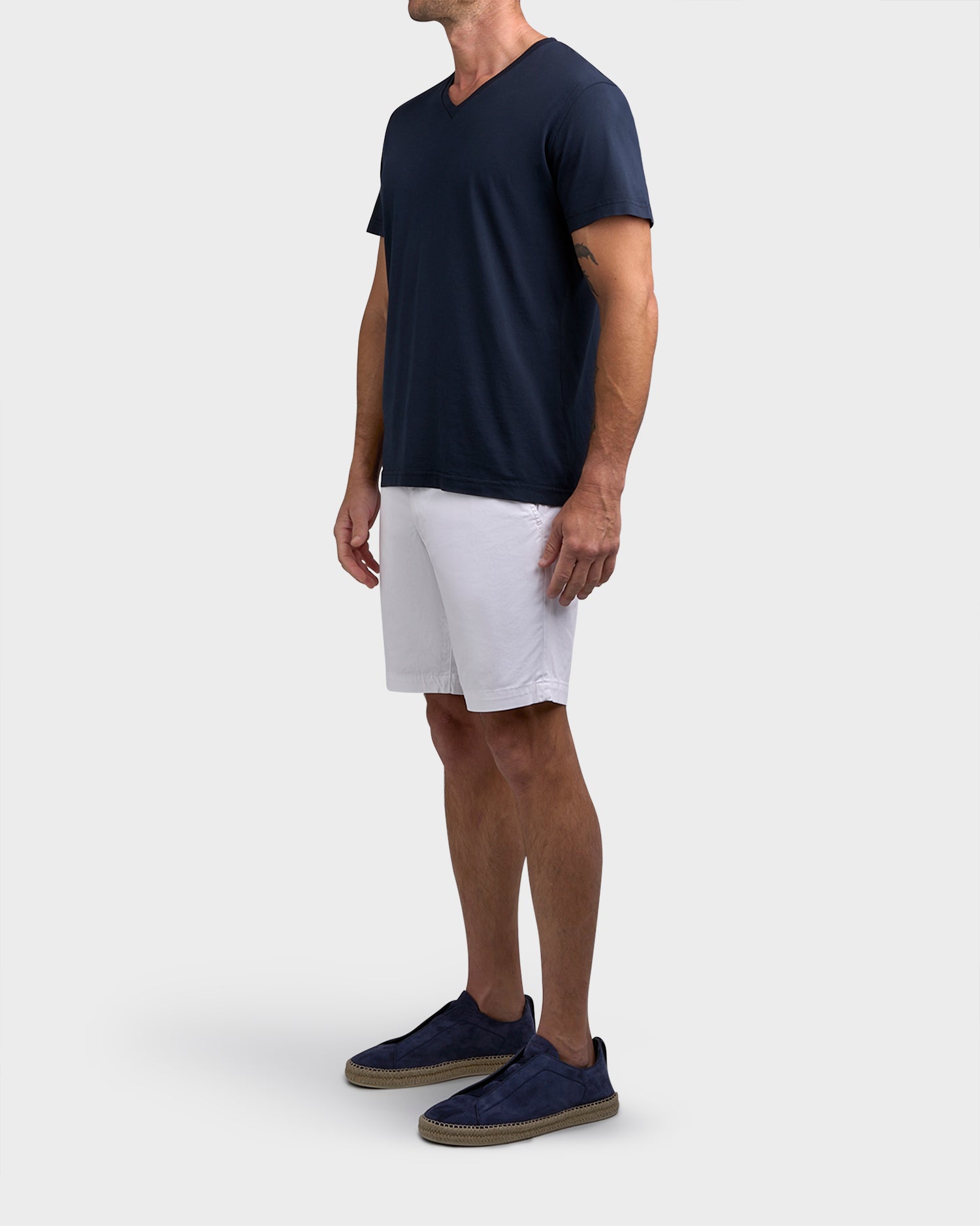The Wanderer Short by Adriano Goldschmied has a clean trouser look in a slim fit with slightly tapered legs.
