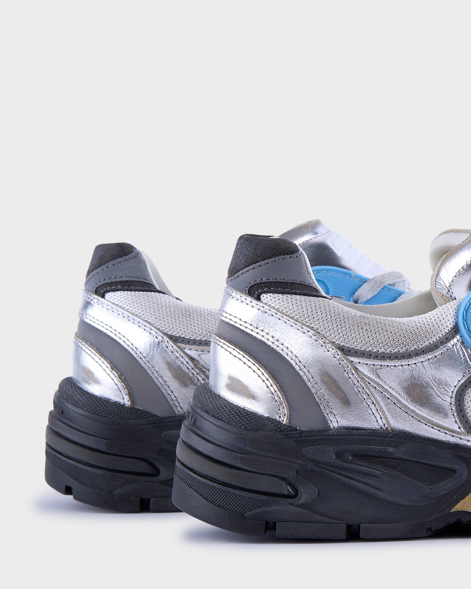 A soul with a wealth of stories to tell: our Dad-Star sneakers have timeless style, created to be passed down through the generations. This version features a white mesh and silver foiled leather upper accentuated by a black leather star and black suede heel tab. The light blue eyelets, two-tone sole and ice-gray laces add the finishing touch.