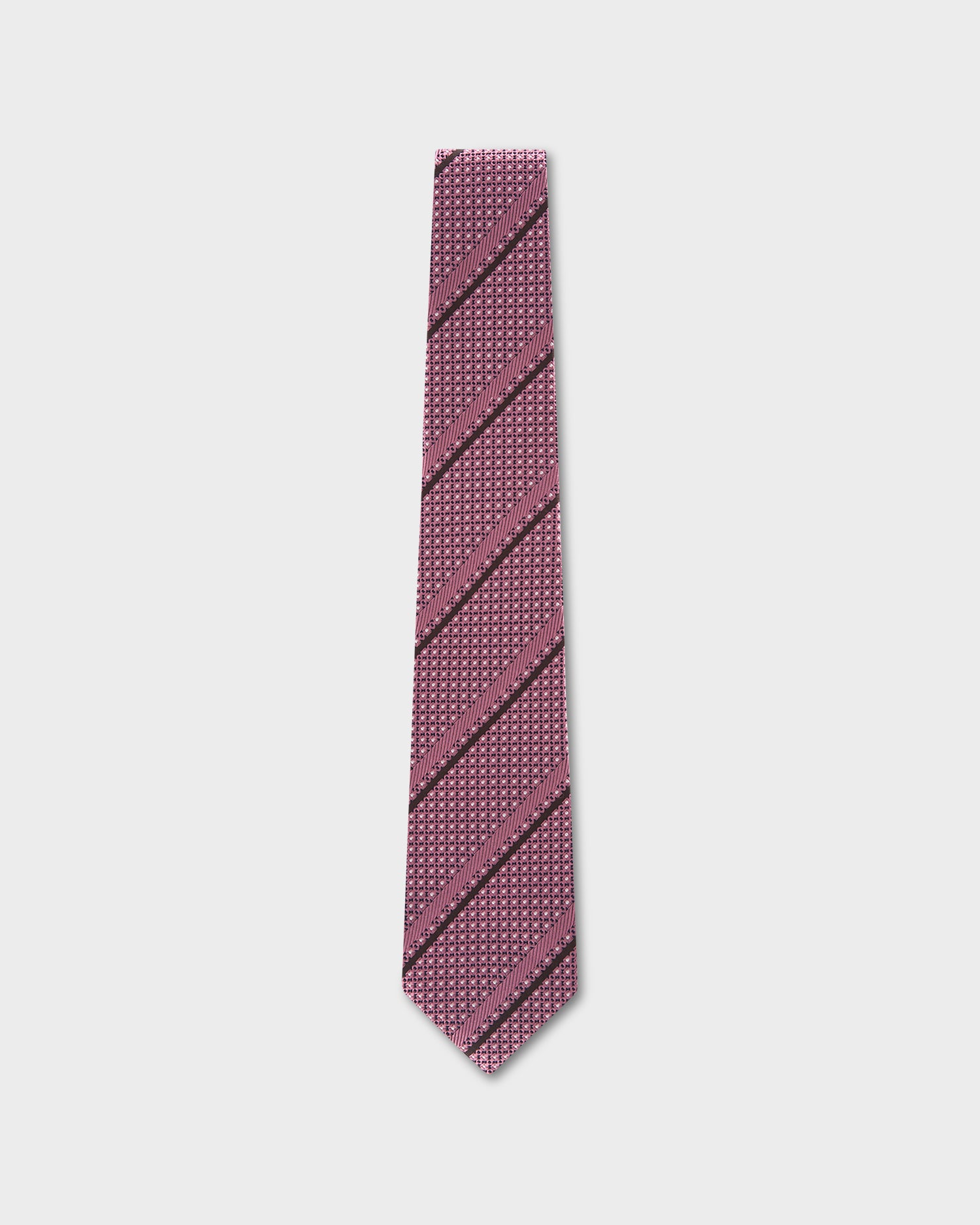 Mauve with Brown Diagonal Stripe and Navy Micropattern Tie