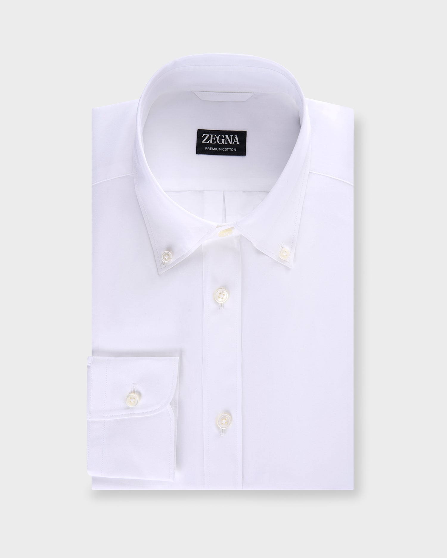 Thanks to its superior cotton fibers, the Premium Cotton Zegna shirt is naturally smooth and wrinkle-resistant. Only long-staple fibres are used to create the Premium Cotton yarns of this garment, imbuing it with strength, softness and durability. The long-sleeve tailoring shirt is presented in a classic colourway. It is styled with a button down collar.