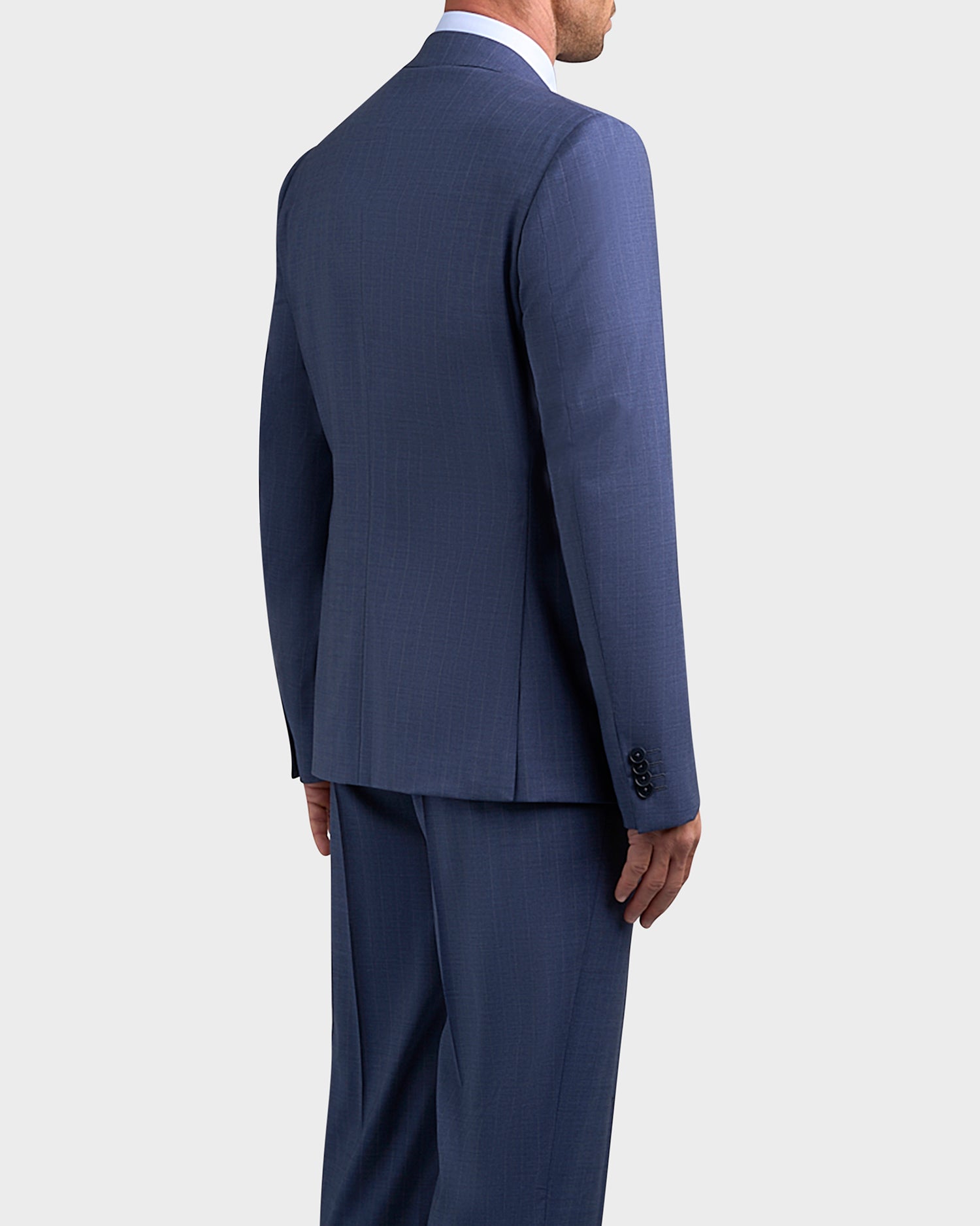 Impeccably tailored in Italy, this blue suit with refined grey pinstripes exemplifies modern sophistication. Cut to a slim, drop 8 silhouette, it sculpts a sharp, contemporary profile while maintaining ease of movement thanks to its fine wool with a touch of elastane. Classic details—flap pockets, notch lapels, and double vents—lend timeless appeal, making it a versatile choice for both business and formal occasions.