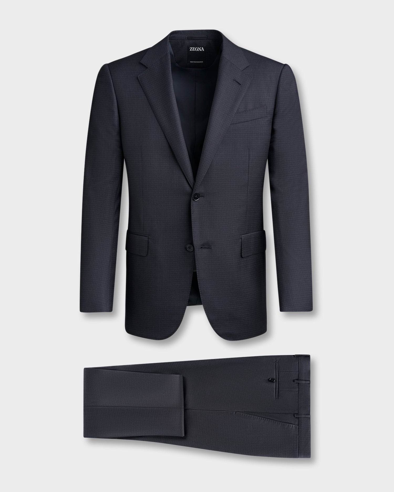 Introducing the Zegna High Performance Suit, a refined fusion of Italian craftsmanship and modern innovation. Crafted from a luxurious blend of 92% wool, 5% silk, and 3% elastane, this dark grey suit with a grey tonal check offers the perfect balance of comfort, breathability, and flexibility.