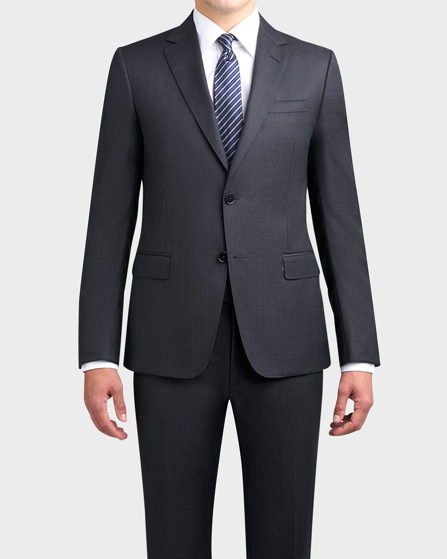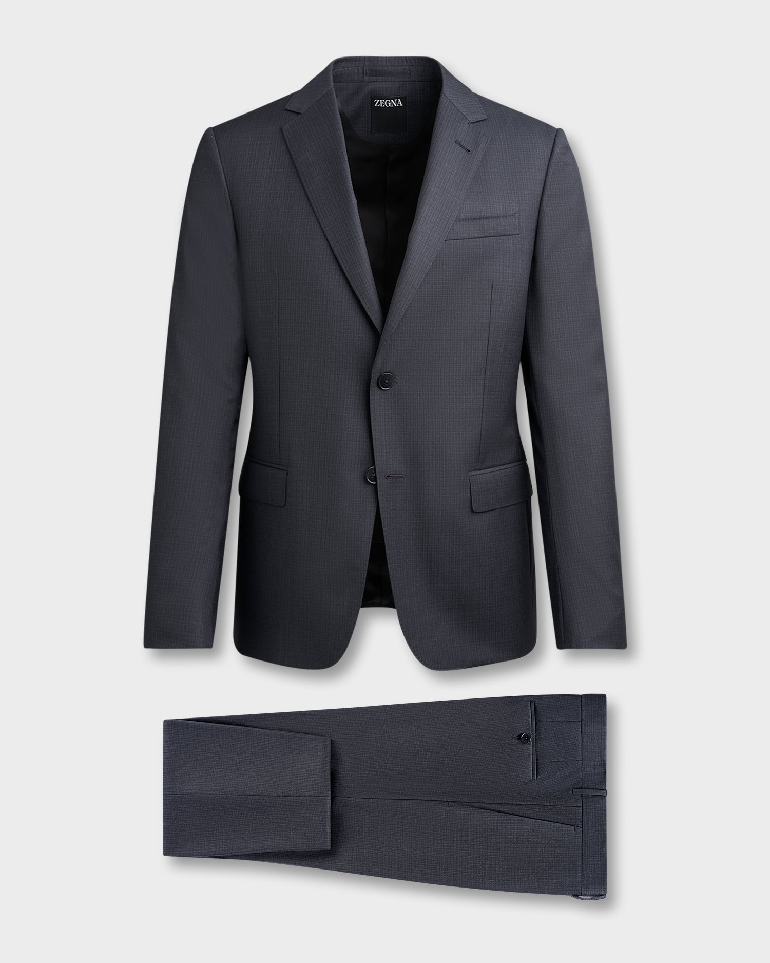 The dark grey pure wool tailoring suit is made from Zegna's proprietary Australian merino wool. In addition to its superior comfort, this fabric lends the suit a rich finish.