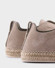 A lighter version of Zegna's iconic sneakers, the beige suede Triple Stitch espadrilles combine an unexpected mix of materials to create a chic look. Underneath the rich suede, the espadrilles' iconic roped midsoles are paired with lightweight rubber soles. Their signature triple-crossed elastics keep them secure while evoking the traditional hand-stitching of tailored jackets, a tribute to the brand's legacy.