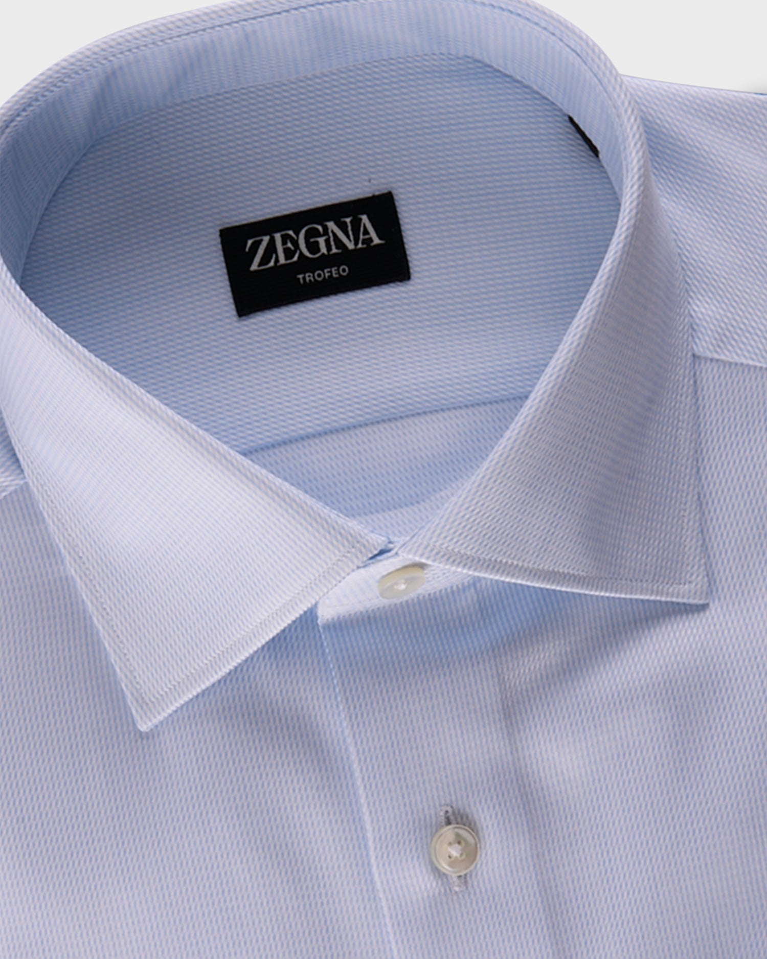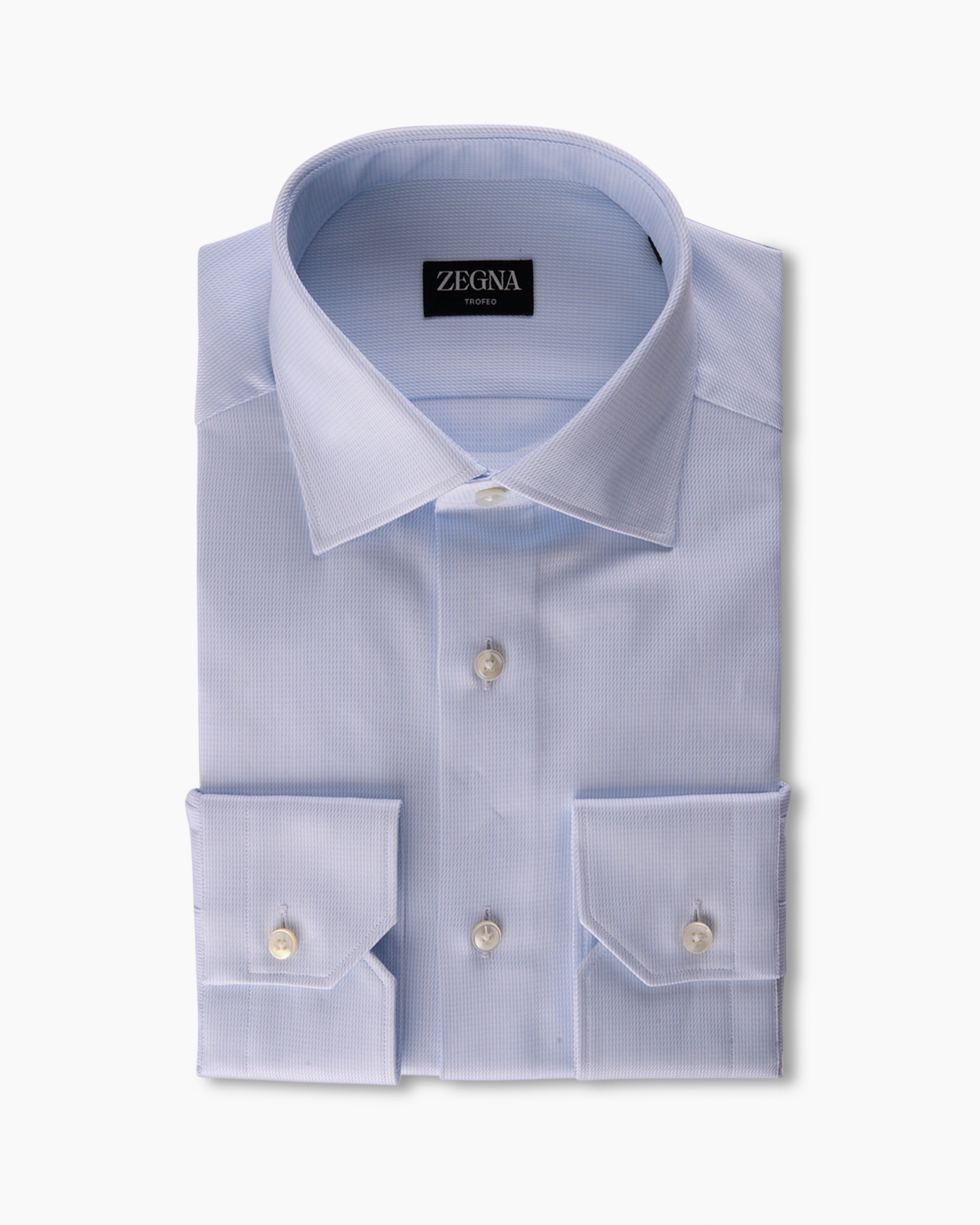 Crafted from pure Trofeo™ cotton, only the longest, more elastic fibers are hand-picked to grant this blue microtexture shirt its premium quality and performance. The classic button-up is styled with a semi spread collar and standard button cuffs.