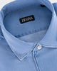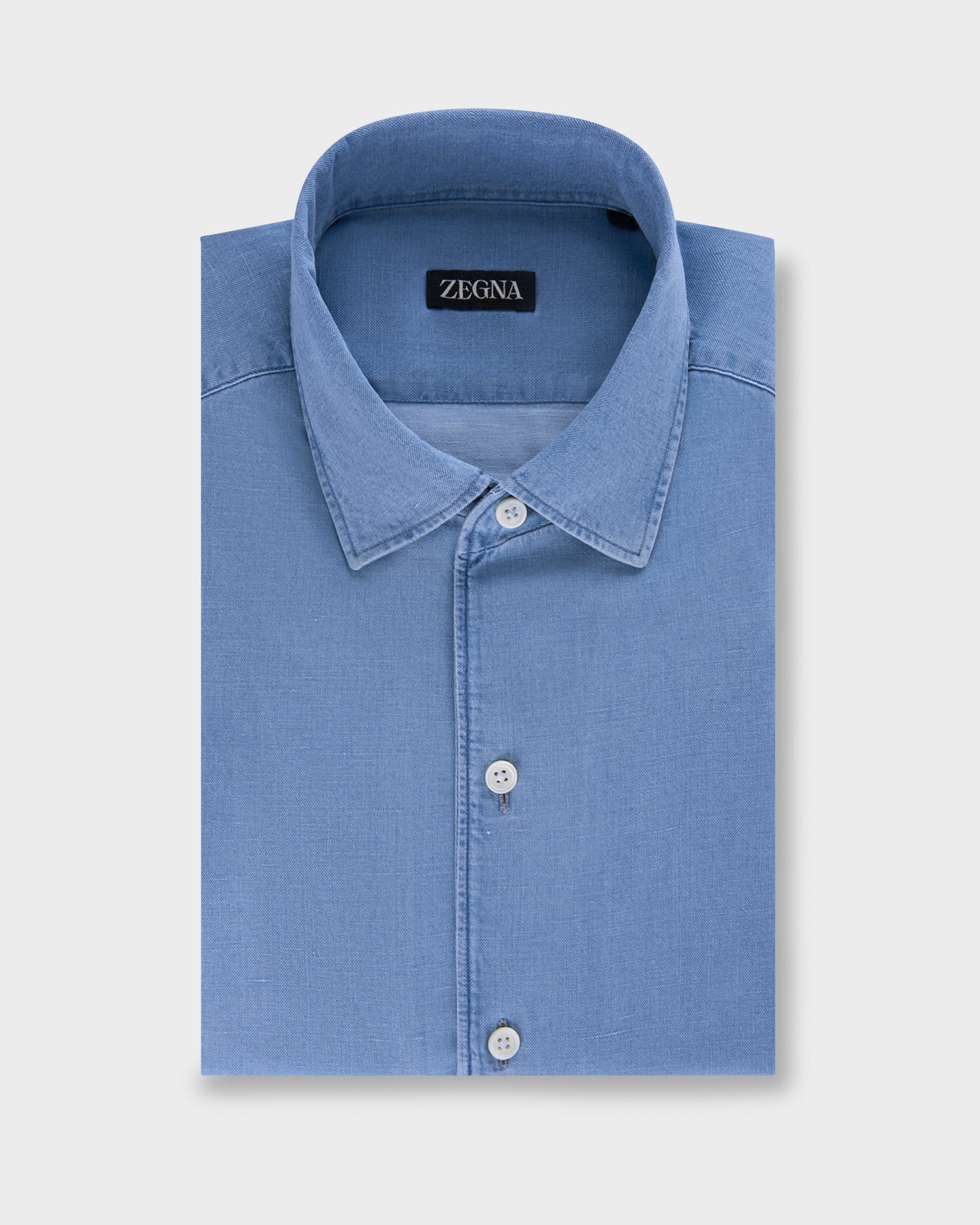 A bleached finish lends effortless charm to this light blue cotton-linen denim shirt.