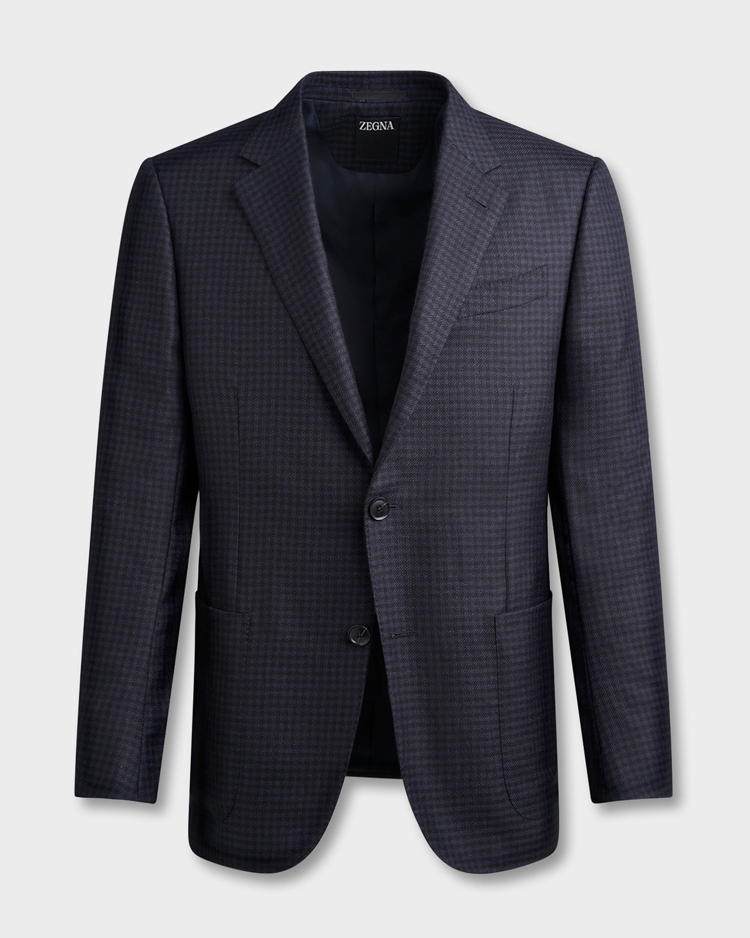 Navy And Black Houndstooth Check Cashmere Silk Sports Jacket
