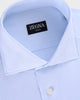 Thanks to its superior cotton fibers, the white with pal blue pinstripe Trofeo cotton shirt is naturally smooth and wrinkle-resistant. The long-sleeve tailoring shirt is presented in a classic colourway. It is styled with a semi-spread collar.